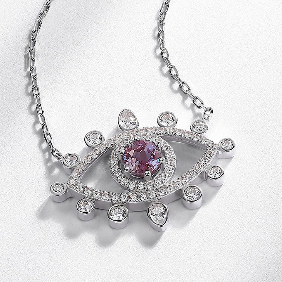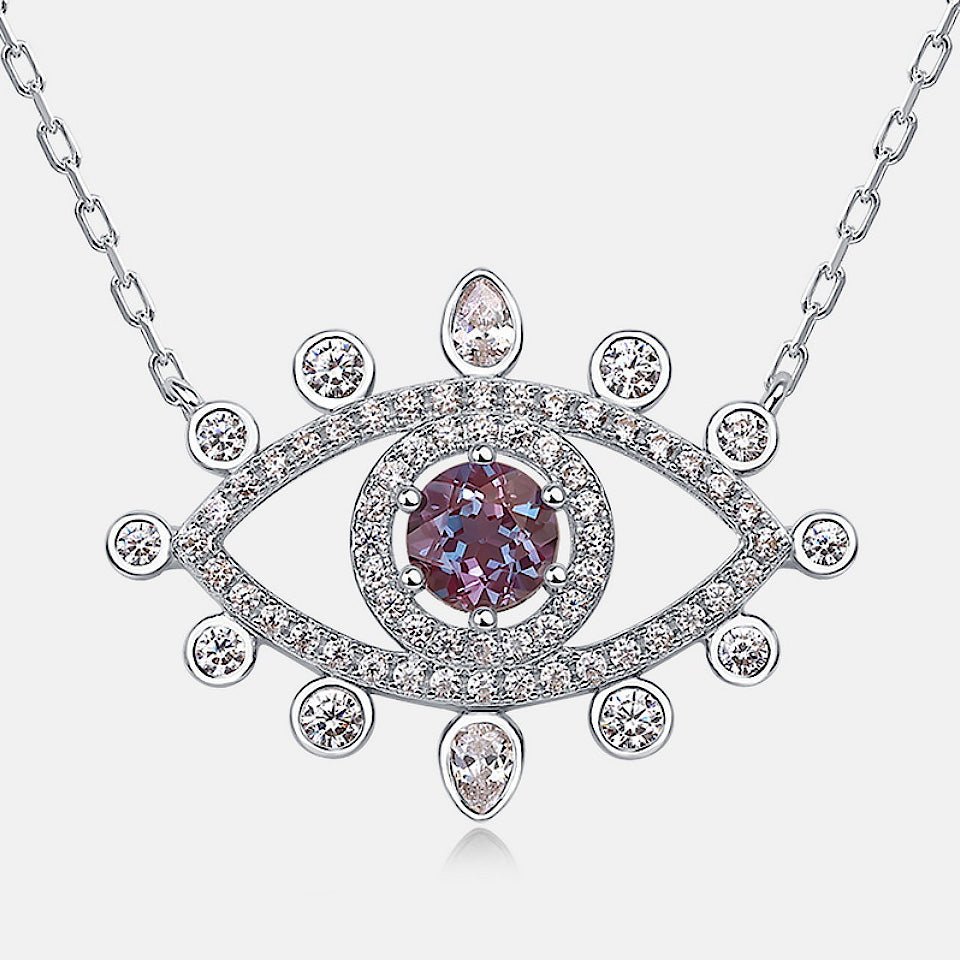 Unveil the enchanting blend of mysticism and contemporary grace with the Evil Eye Alexandrite Necklace. This captivating piece is not just an ornament but a beacon of sophistication and spiritual safeguarding. At its heart lies a stunning Alexandrite gemstone, renowned for its color-changing properties, set within an elegantly crafted evil eye motif. The necklace’s design harmonizes the mystical allure of the evil eye with the modern appeal of high-end jewelry.